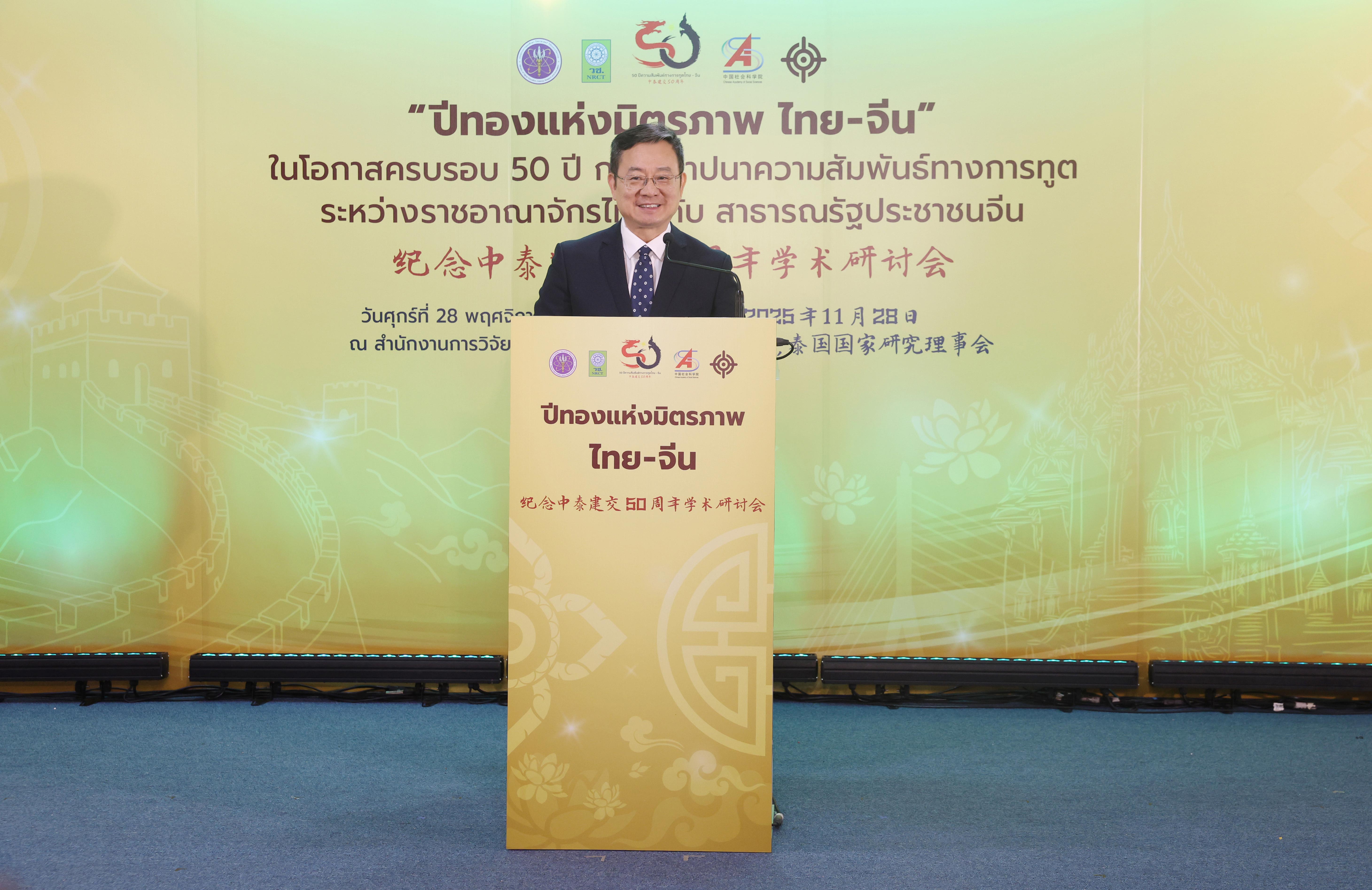 维帕拉特·迪翁表示,今天是具有特殊意义的日子,我们共同纪念泰中建交50周年。这段源远流长、包罗万象且如黄金般璀璨的双边关系,彰显了两国间深厚的互信、理解与友谊。今天的会议不仅是对泰中建交50周年的纪念,更是展望泰中学术交流未来前景,以联合科研、科技与创新合作为动力,为共建泰中命运共同体贡献智慧与力量的重要契机。相信今天专家学者齐聚一堂,将凝聚学术新思维、创造合作新契机,助力泰中关系在未来50年绽放更绚丽的光彩。